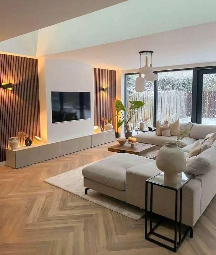 Our goal was to emphasise comfort, colour, and generous space to move freely. large smart TV, varied upholstery textures, soft furnishings, and subtle pops of colour all worked together to bring a vibrant, holiday-home atmosphere.